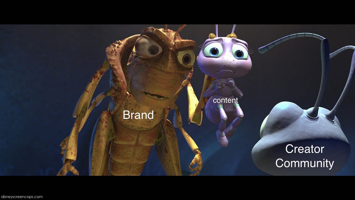 “There are four c-words that have become very problematic: content, culture, community, and creator. Building “a community that provides content to creators to champion the culture” is nice alliteration, but it’s not an idea. It’s word salad.” Paul Jun really got me thinking with this post, especially after this part: